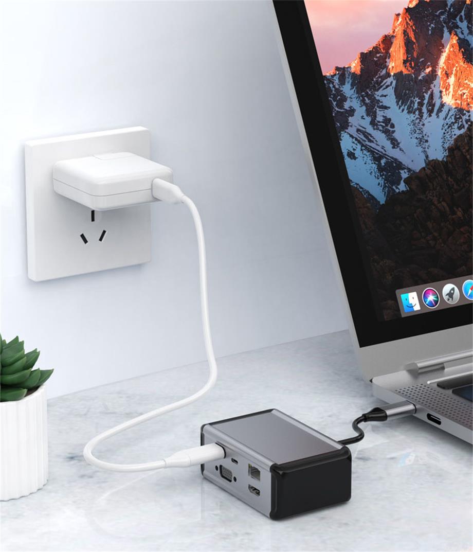 This is 12 in 1 vertical desktop smart Type C Usb Hub which has high-speed USB 3.0 interfaces. The transmission speed is up to 5Gbps, The movies and large files are easy to transmission, reduce waiting time. This Usb 3.0 Hubs has type-C flash charge, 100W high power is to meet the expansion of external multi-device use that can provide notebook with strong power supply capacity. The Usb C Hubs has independent -audio port design which support earphone and microphone -audio output, solve the problems of listening, recording, -voice calls, etc. After add memory card/TF card slots, this Usb Hubs can solve the problem for laptop/Super-pole card reading without card slot, read at high speed, and make data processing more efficient. It has integral aluminium alloy shell, fine sandblasted aluminium alloy material, corrosion resistance, easy to heat dissipation, scratch resistance, integral partition molding, higher strength, more durable. Applicable to a variety of scenarios, extended for laptop and other ultra-basic multi-interface, multi-screen simultaneous broadcast. High speed card reading plug and read. And fast reading of memory cardsmakes data processing is more efficient. The Multi port USB say good bye to repeated plugging. Multiple USB devices can be connected externally.It also has faster and more stable online experience. After connect to the wired network, and the game/download/office can be unblocked. Efficient office and big querlarge screen meetings are easier. The VGA interface connects projector, monitor and other large screen device The presentation content is clearly projected, ercioud and the meeting speech is more convenient.