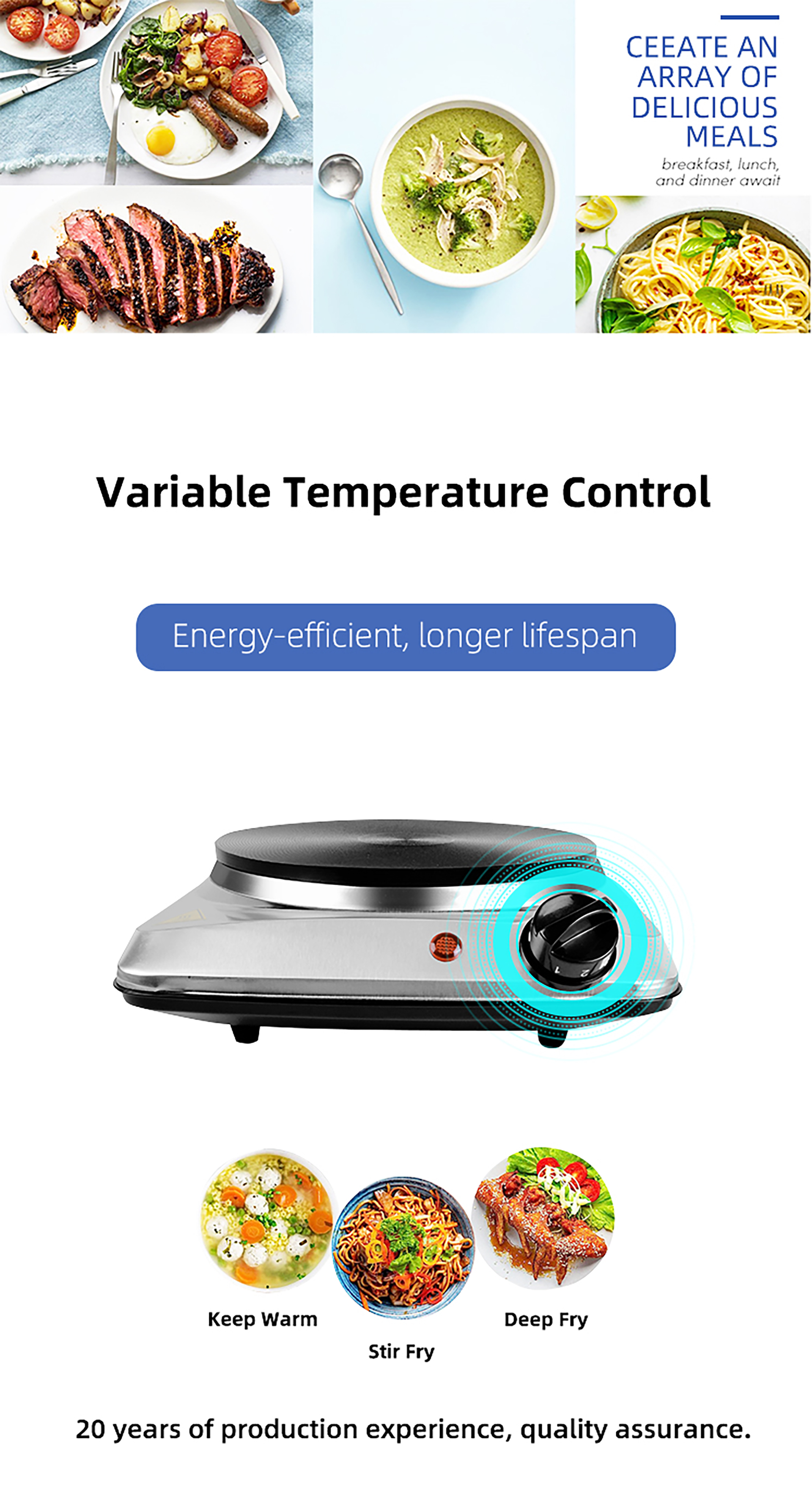 With the Burner Cast Iron Hot Plate Cooking is quick, easy and consistent. This portable electric hot plate offers reliable heating and takes up minimal cooking space. At 1,500Watts, it heats up quickly with dual adjustable temperature knobs. The non-stick cast iron hot plates will ensure even cooking and make clean up a breeze. Use it when you need an extra heat source for holiday cooking and entertaining, or simply to keep food warm at a buffet station. The perfect addition to any cooks collection; it is compact enough to be stored in a cabinet, yet stylish enough to leave out for everyday use.