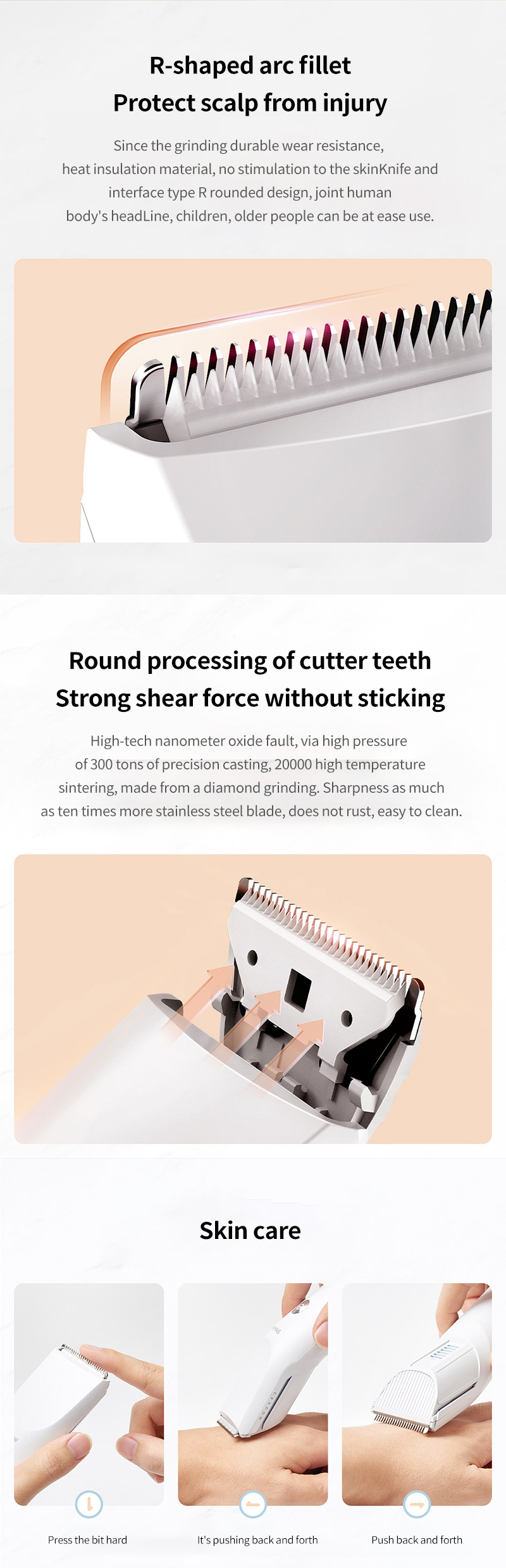 Self-grinding is durable, wear-resistant and non-irritating to the skin. The blade and contact surface are designed with R-shaped rounded corners to fit the curve of human head