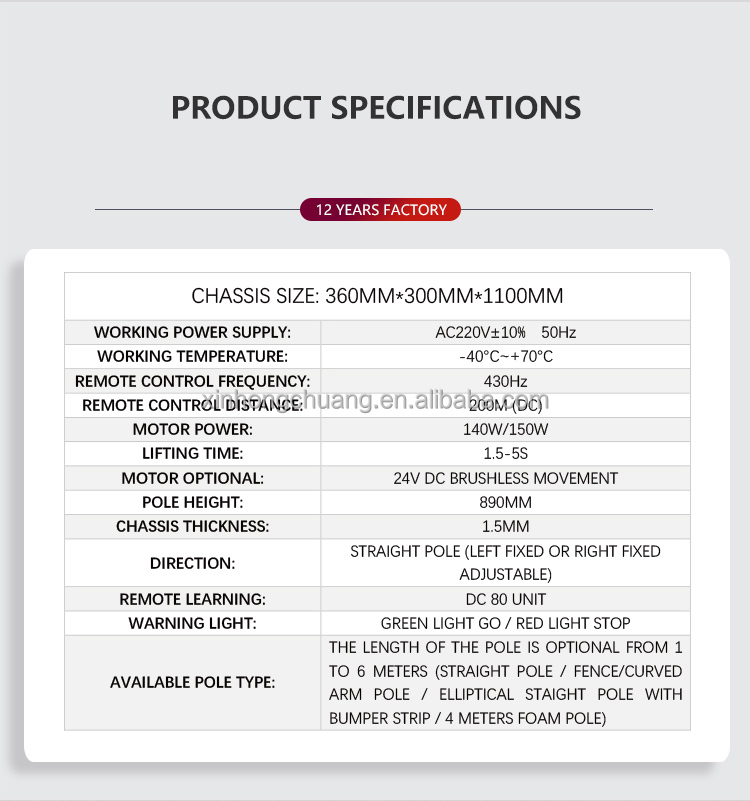 The boom barrier gate is typically operated electronically and can be controlled manually or automatically. It is commonly used in conjunction with access control systems, such as RFID cards, proximity cards, or license plate recognition systems, to ensure only authorized vehicles can enter or exit the area.