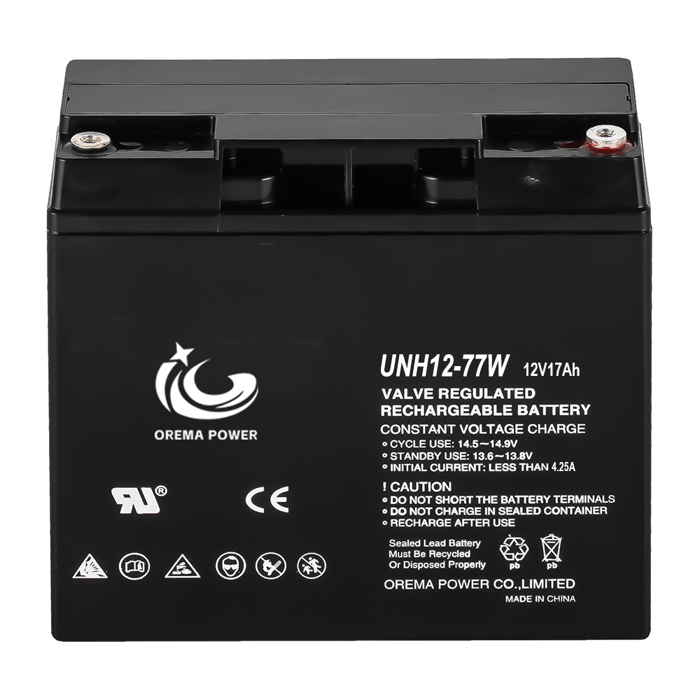 Transform your lifestyle with OREMA 12V77W AGM high rate discharge battery! Designed for high-demand scenarios like UPS systems and data centers, this 12V AGM battery is a part of our innovative UNH series. Its AGM technology, combined with a unique corrosion-resistant alloy and thin sheet construction, boosts plate surface area and efficiency.