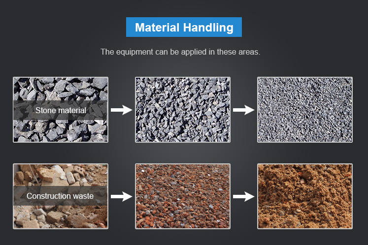 Mobile crushing plant can be used in Pebble, rock (the limestone, granite, basalt, aluminum, andesite, etc.), ore tailings, and slags. Can be used in Building aggregate, highway, asphalt concrete and cement aggregate production. As well as stone reshaping production in water conservancy and hydropower engineering field, highway, railway, bridge, passenger line, airport runway, municipal engineering and high-rise buildings finely process of mining areas.