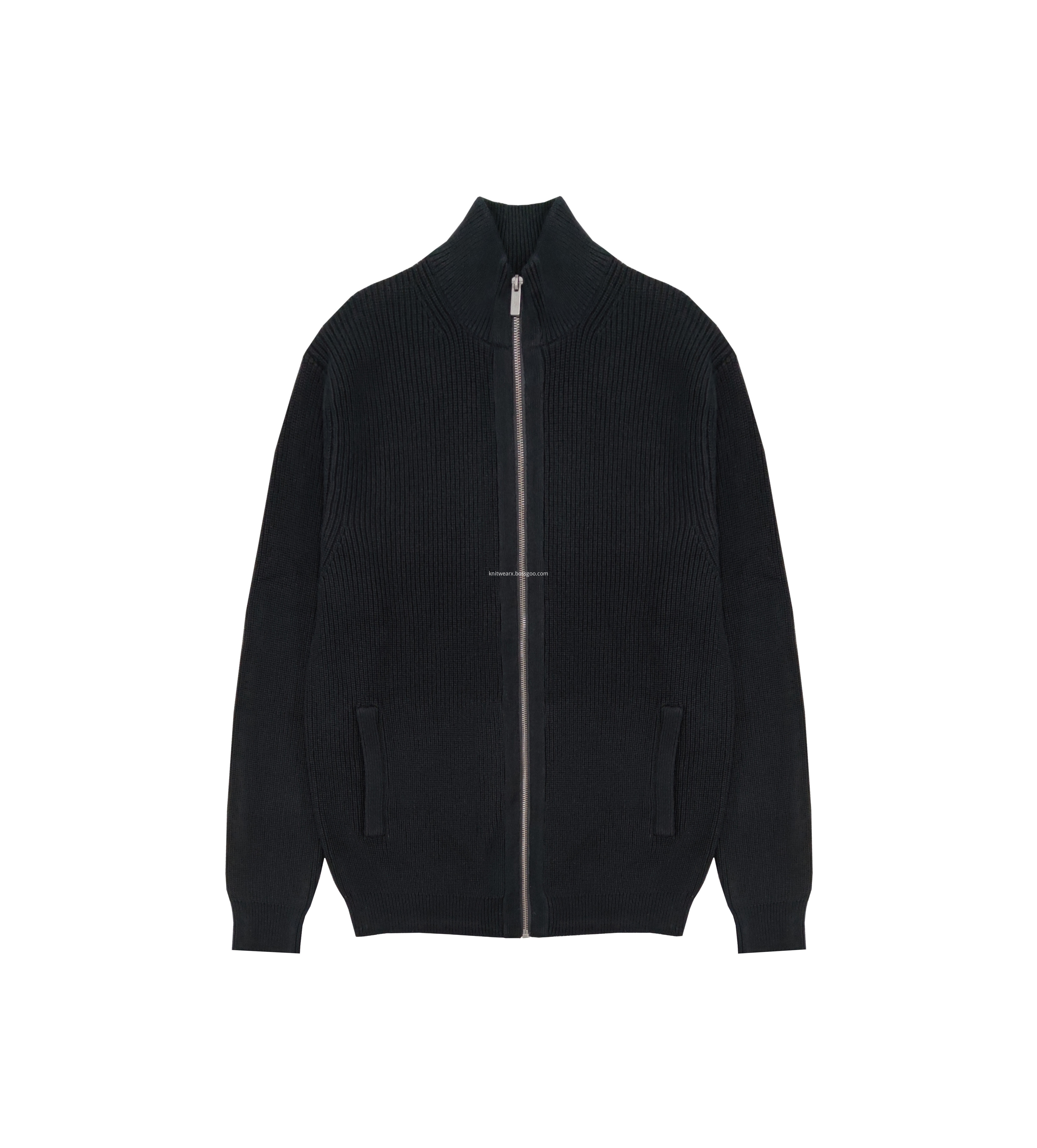 The fabric of Men's Rib Knit Zip Up Pocket Cardigan is 80% cotton and 20% nylon. The needle type of Men's Knitted Cotton Sweater is 5GG. Garment weight of Men's Knitted Long Sleeve Cardigan is 746g and is adjustable according to client's requirement. Color of Men's Cardigan is black and the size is from 2XS to 3XL.