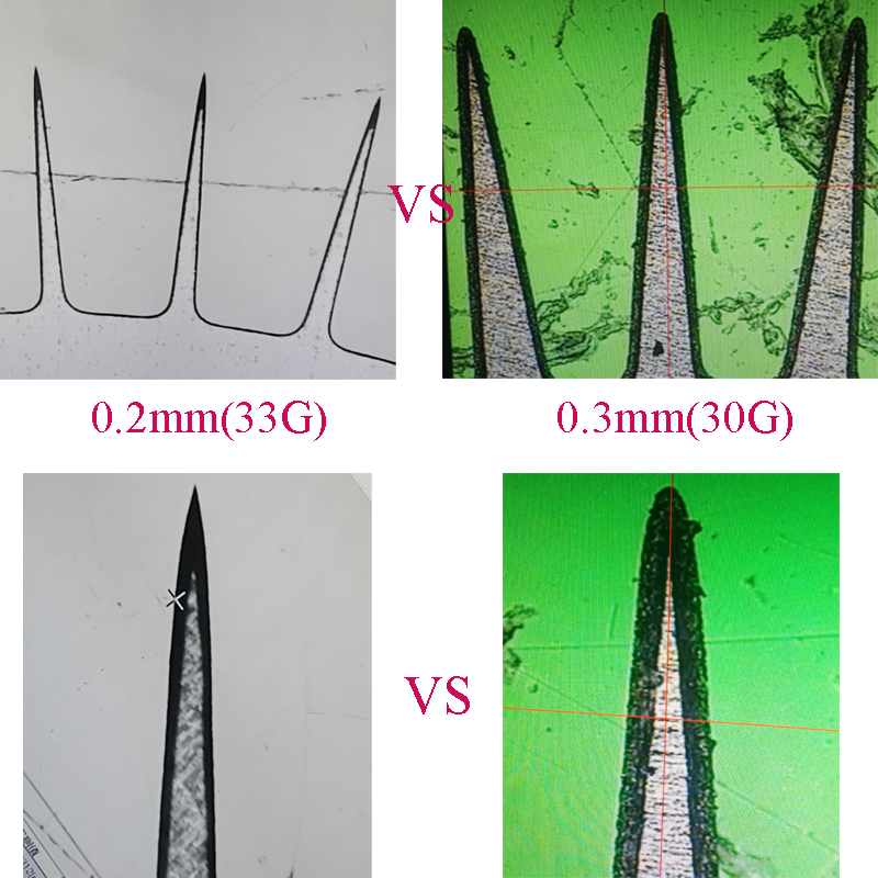 Because of the finer needles 0.2mm, the blood exudation will be less during the puncture process, more when the finer needles slice through tissues without risk causing traumatic skin, vessel and nerve damage.
