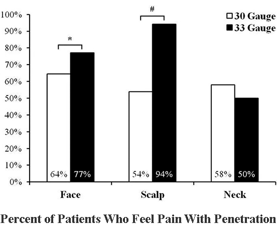 Based on the 33G-0.2mm needles design, when the needles penetrate into skin during the process, the finer diameter will through the skin quickly with less pressure, however,