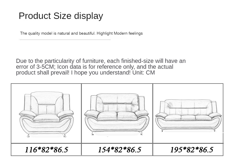 | Product Size(L*W*H)CM | Triple seat:195*82*86.5 Double seat:154*82*86.5 Single seat:116*82*86.5 |
