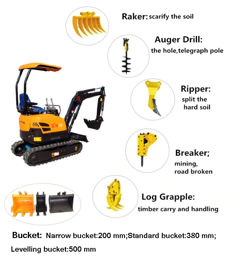 This product has beautiful appearance, high configuration, superior performance, low fuel consumption and wide operating range. It is suitable for soil erosion in vegetable greenhouses, campus greening of municipal departments, digging pits for planting trees on concrete pavement of orchard nurseries, mixing of sand and gravel, construction in narrow places, etc. Hydraulic hammer, loading bucket and gripper. It can reduce maintenance and operation costs, liberate labor, improve the degree of mechanization, with less investment and high returns.