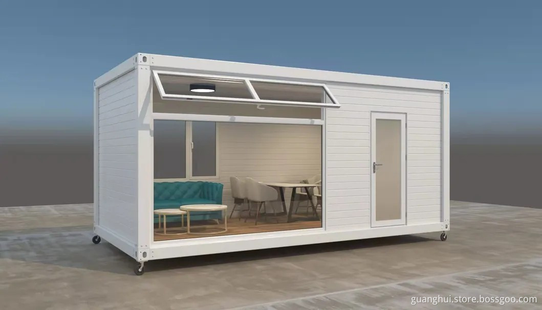 The Guanghui prefab container homes are created through a refined standard process that utilizes various materials including steel plate, sandwich board, bolt, aluminum parts, concrete, wood, ceramic tile, glass, paint, and others. These materials are transformed into a one-piece trailer that enables it to be mobile and easily recoverable while maintaining its safety, beauty, economy, shortcut, and high-efficiency characteristics. Moreover, aside from being environmentally friendly, these prefabricated steel structure container houses do not generate any waste or pollution. Its box-like feature allows it to be relocated effortlessly to any desired location. Our prefab container houses are features of sustainability and eco-friendliness, affordability and cost savings, design and customization, mobility and portability, efficiency and convenience. Buy Container Home From Our Company at Competitive Prices (Container House Price). Contact Now!