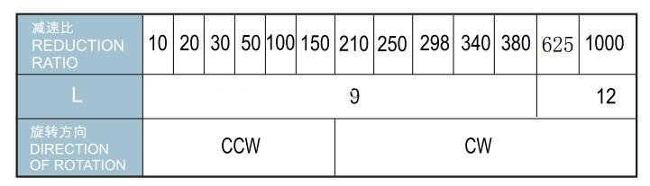 Reduction ratio table :(The "L" is Gear length ,the unit is "mm")